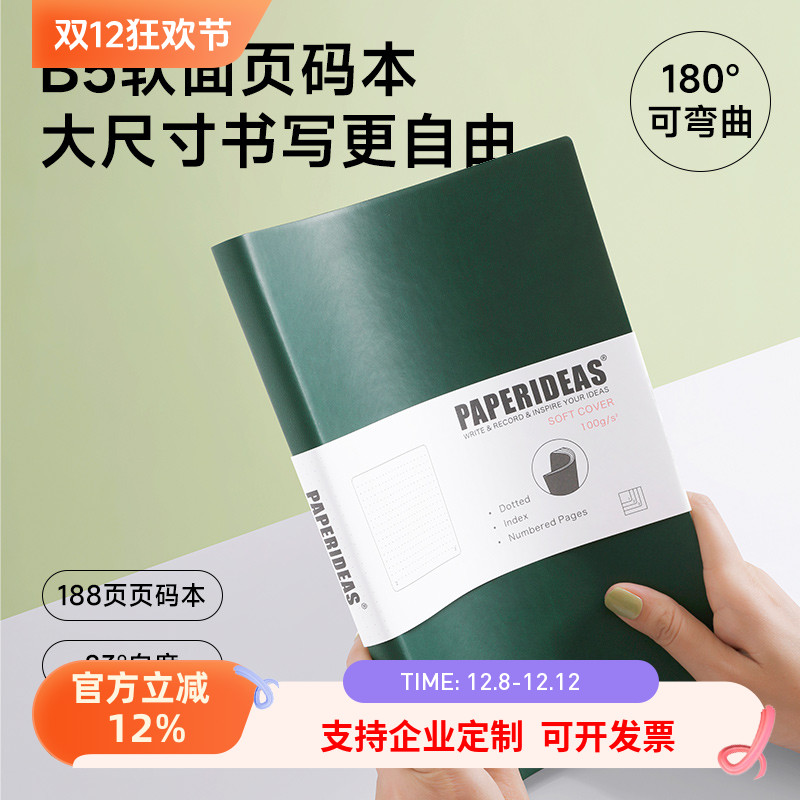 B5笔记本软面抄点阵横线手账大本简约大学生日记本 小清新记事本阅读会议记录本私人定制封面定做logo刻字