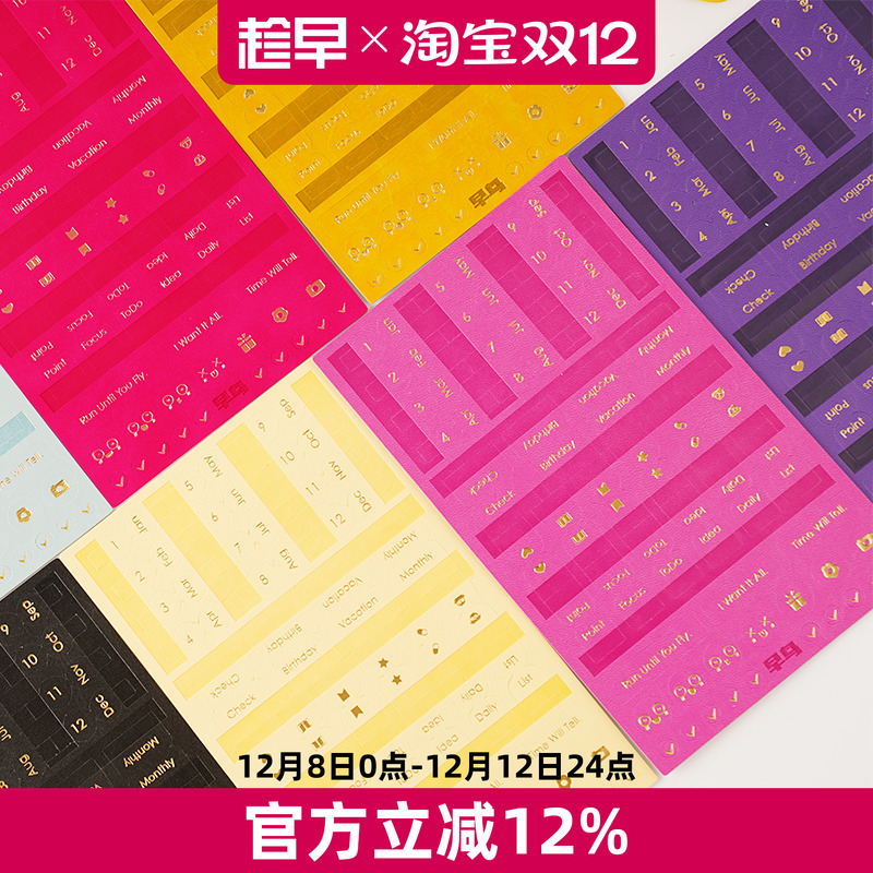 趁早早鸟系列皮质精品索引贴小清新文艺日记本笔记本纯色标签贴纸手帐本DIY装饰贴日期数字月份贴纸