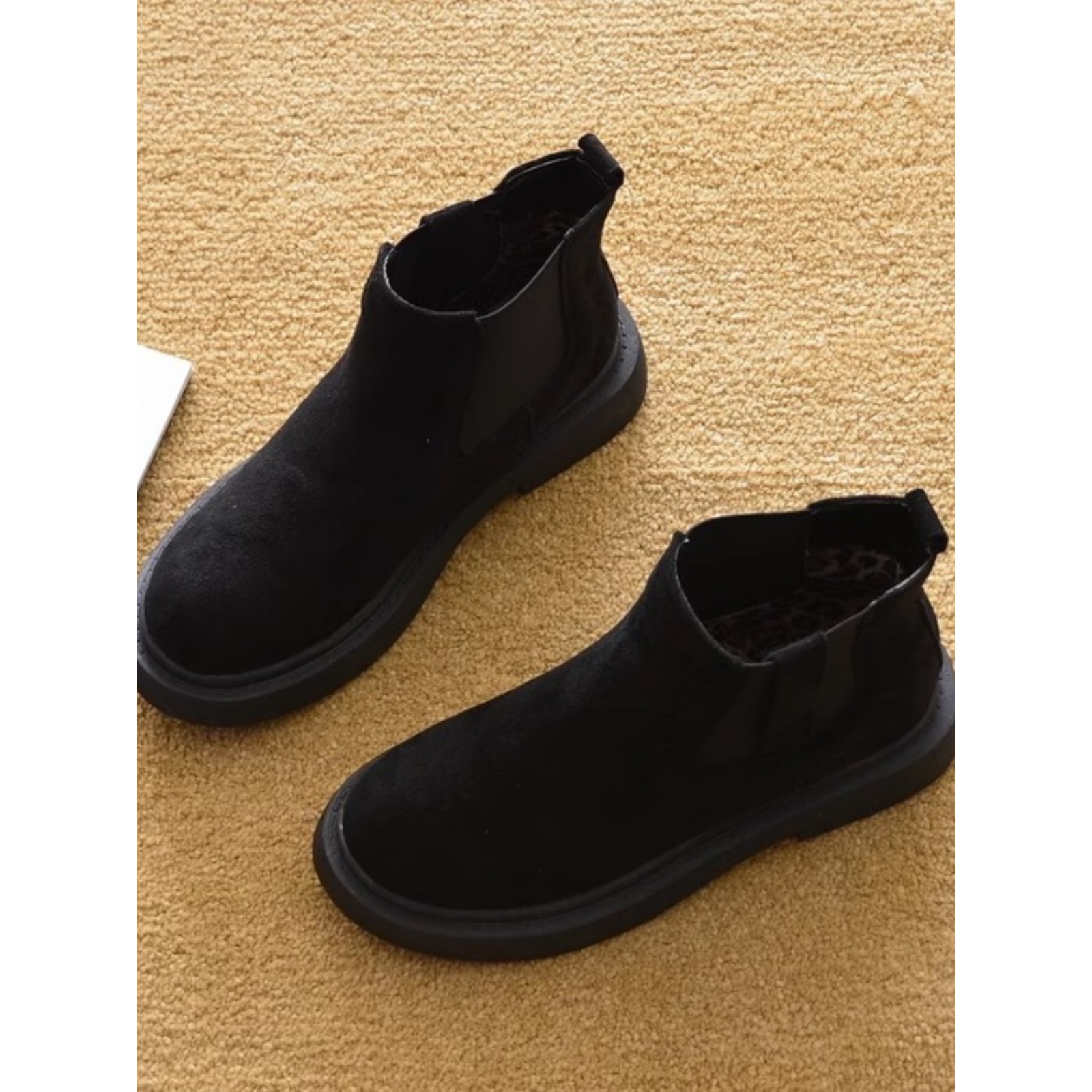 欧美风厚底短靴女冬季百搭保暖时尚靴子羊皮毛一体靴平跟棉靴圆头