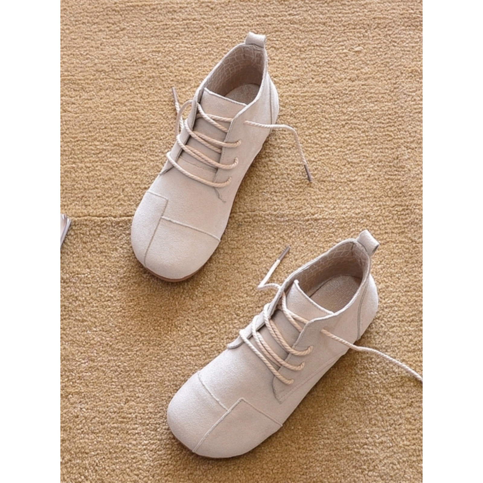 嘉俪多欧美短靴女春季布里牛皮拉链系带圆头平跟纯色保暖新款时尚