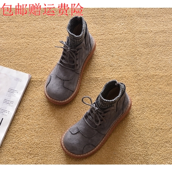 包邮欧美外贸秋季新款平跟短靴单靴平底马丁靴毛线口骑士靴女靴子