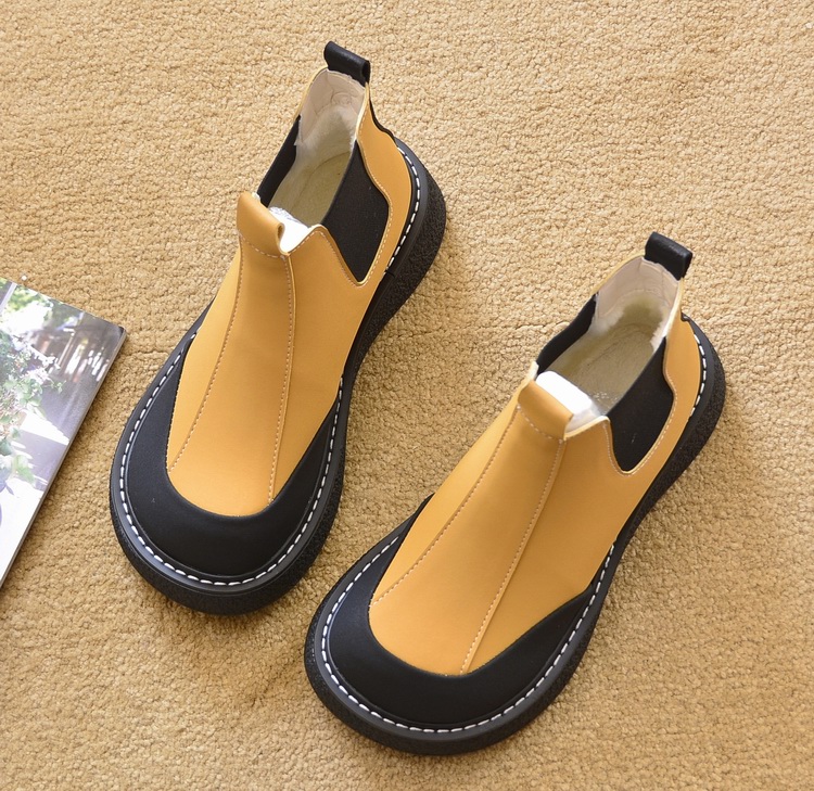 包邮秋季外贸平跟短靴单靴欧美马丁靴短筒时装靴厚底圆头女鞋靴子