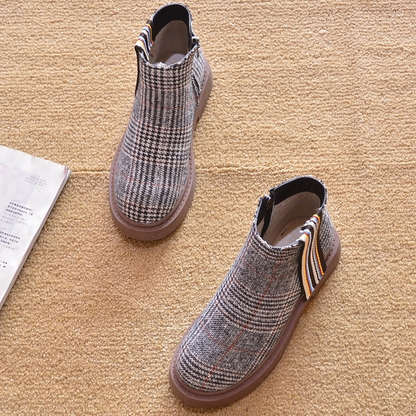 新款包邮欧美外贸秋冬平跟短靴平底马丁靴短筒时装靴圆头女棉靴子
