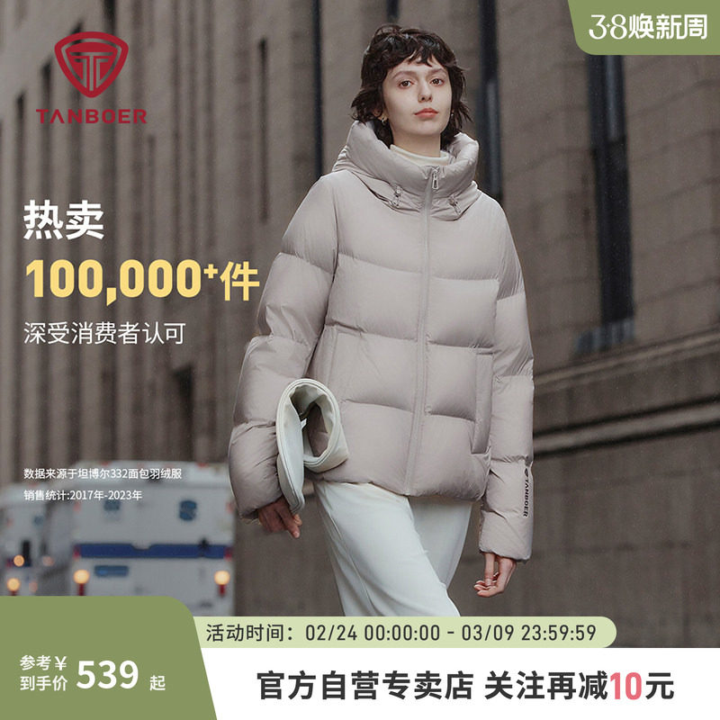 坦博尔户外冬羽绒服女短款连帽加厚抗寒休闲时尚面包服保暖外套潮