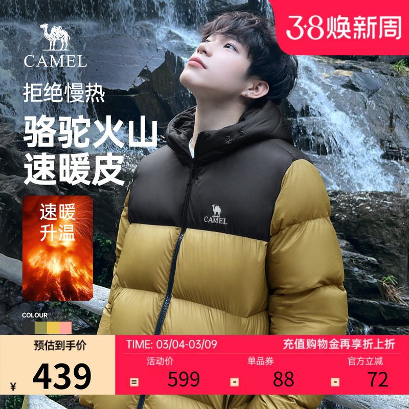 【迪丽热巴同款】骆驼运动羽绒服冬男女款防寒连帽羽绒外套面包服