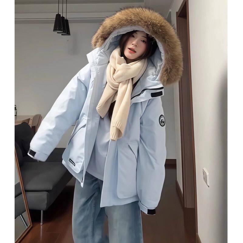 2025冬季新款白鸭绒羽绒服女短款连帽加厚保暖白鸭绒面包服外套潮