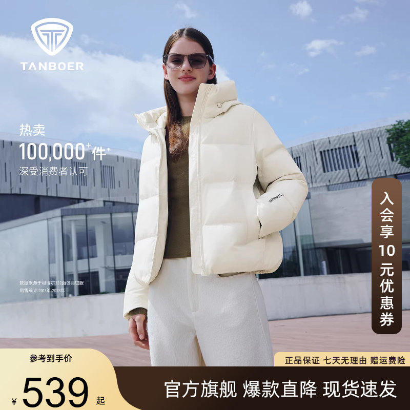 坦博尔25冬季新款羽绒服女士短款保暖连帽休闲加厚显腿长舒适外套