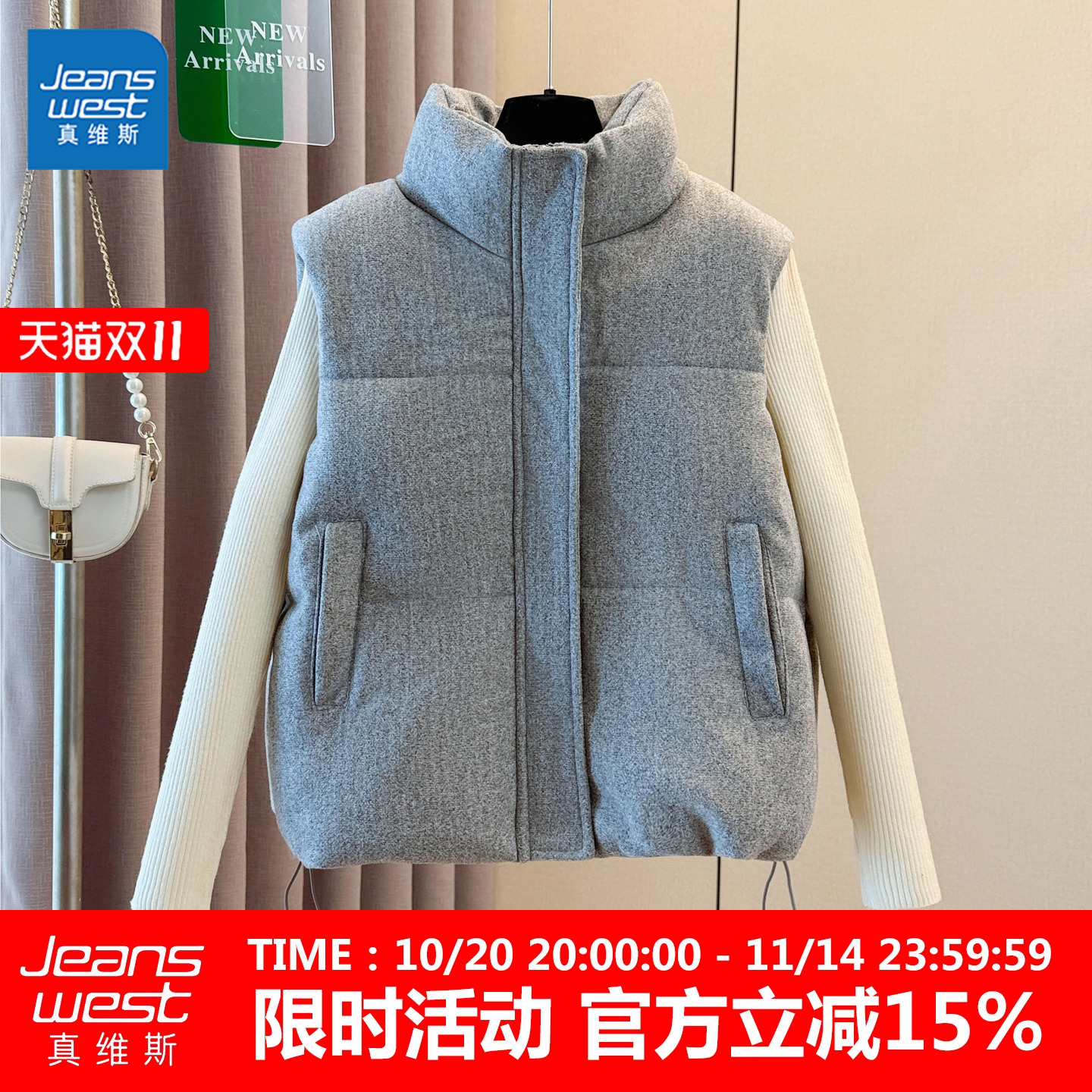 GL真维斯灰色马甲女2025冬季新款韩版立领毛呢时尚感背心外穿外套