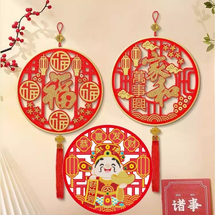 钻石画十字绣家和万事兴财神到福字带框小件中国风镂空点钻绣挂件