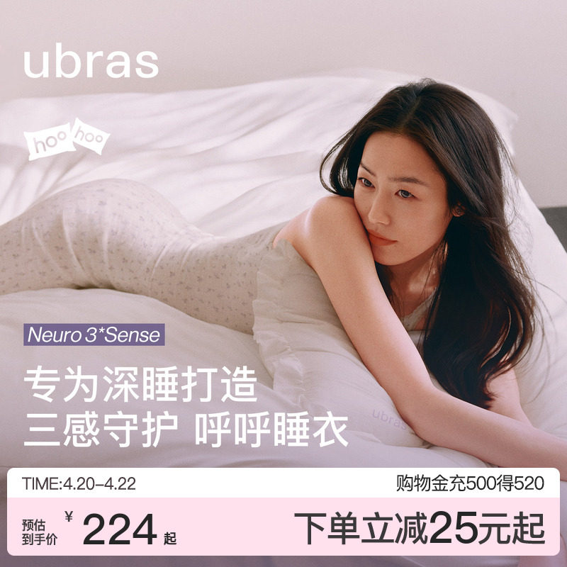 ubras呼呼睡衣V领短袖家居服柔软吊带睡裙女长袖带胸垫26新款春夏