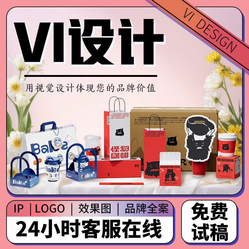 VI设计全套餐饮品牌文创包装外卖酒店logo门头定制公司vi手册设计