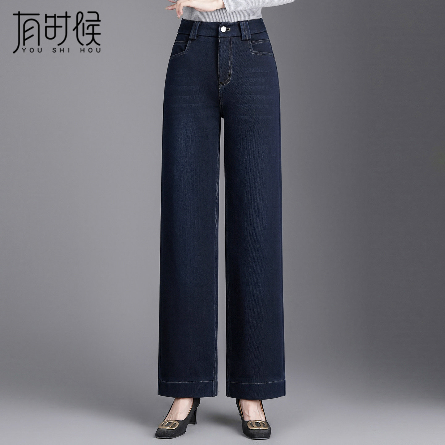 妈妈牛仔裤女春秋高腰阔腿裤时尚大码洋气垂感宽松直筒中年女裤子