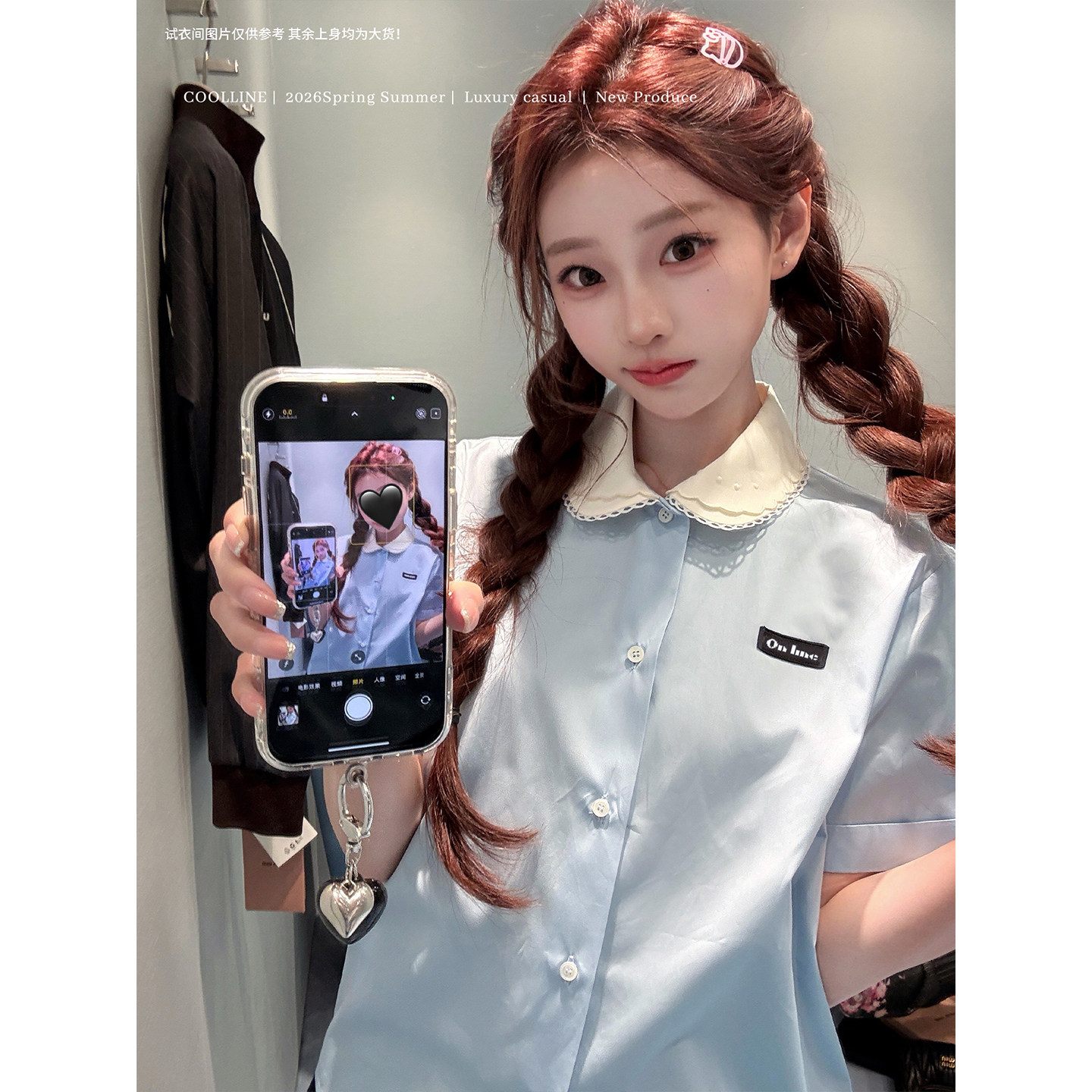 COOLLINE林子熙 钟爱娃娃领 26miu蓝色短袖衬衫/两色半身裙套装
