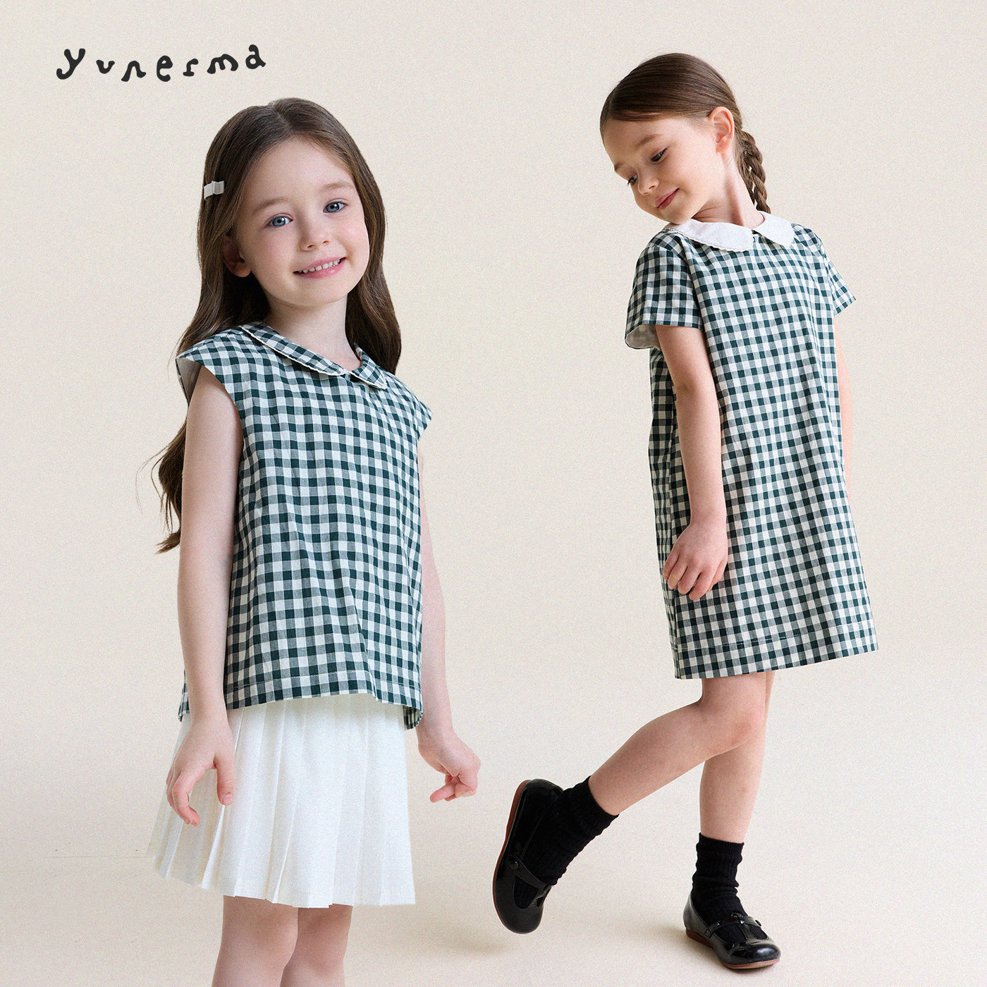 允儿妈女童春夏姐妹款复古格子娃娃衫连衣裙套装儿童上衣宝宝裙子