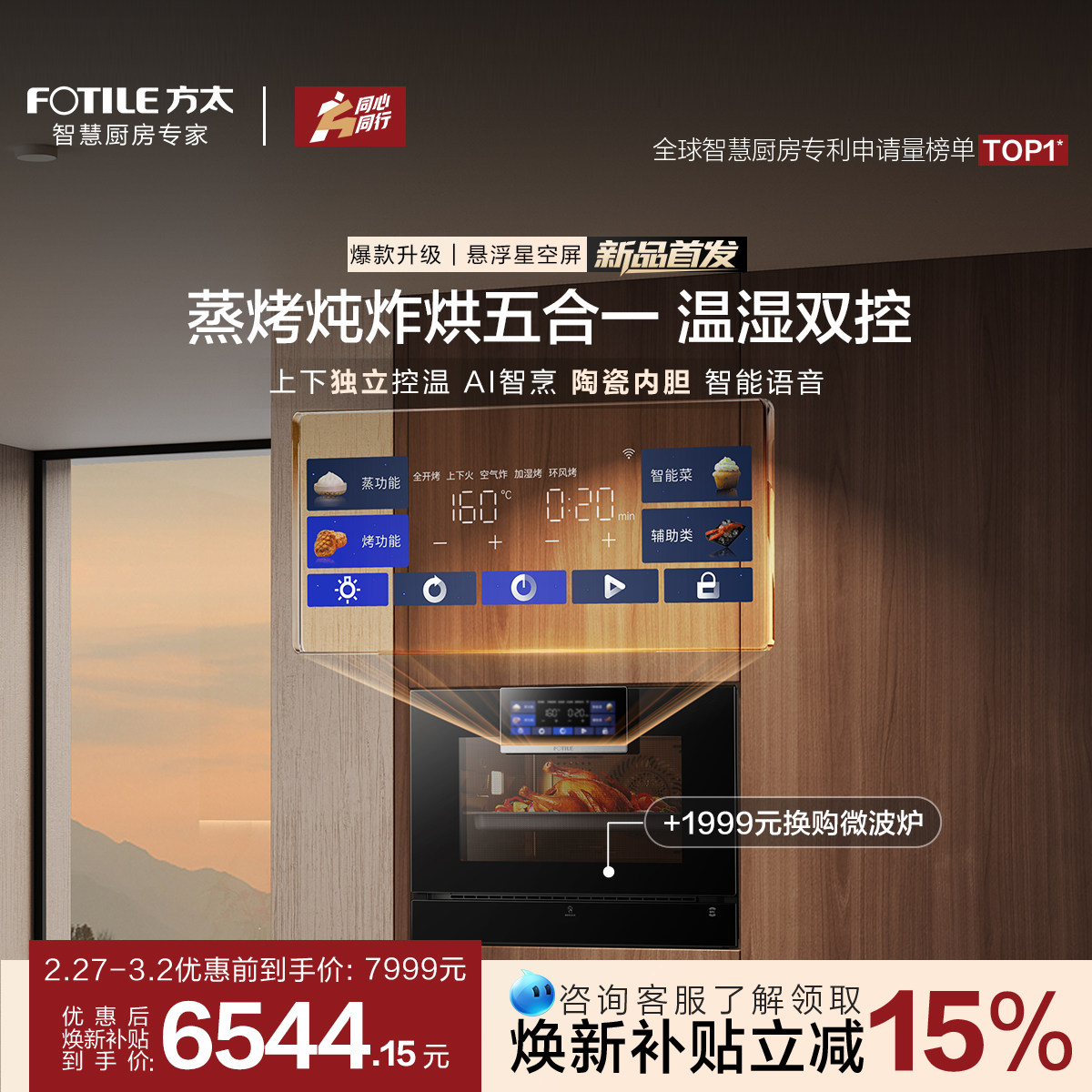 【新品】方太蒸烤箱一体机EP1S烤箱蒸烤一体机嵌入式五合一官方