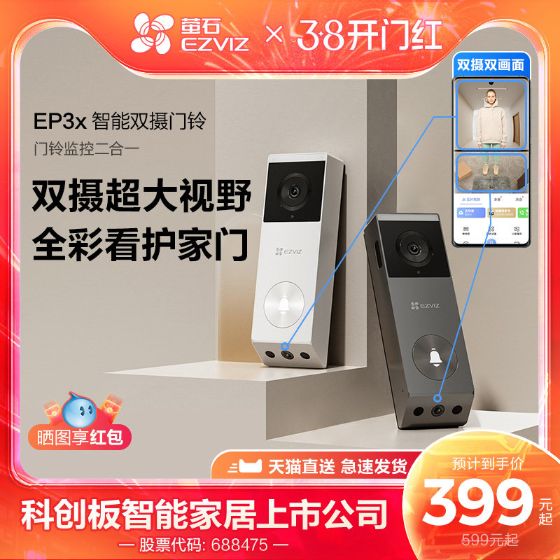 萤石EP3x可视门铃家用可视监控智能电子猫眼入户门防盗门摄像头