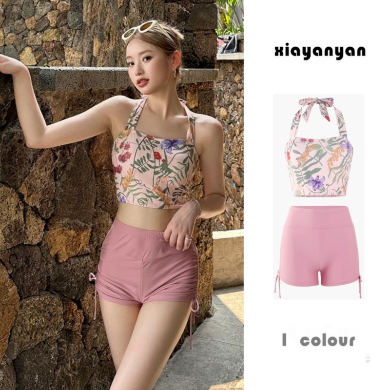 Amber泳衣女士时尚分体平角三件套高级感保守遮肉大码泳装带胸垫