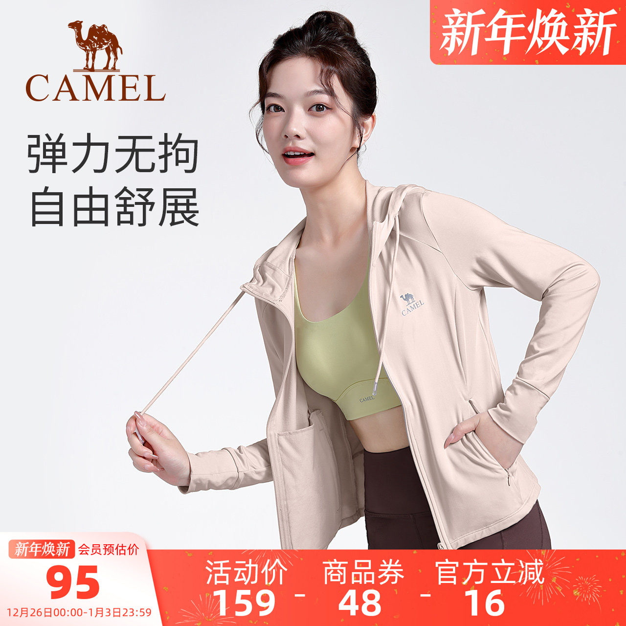 骆驼女装上衣瑜伽服女秋季薄绒外套修身健身服长袖开衫休闲运动服