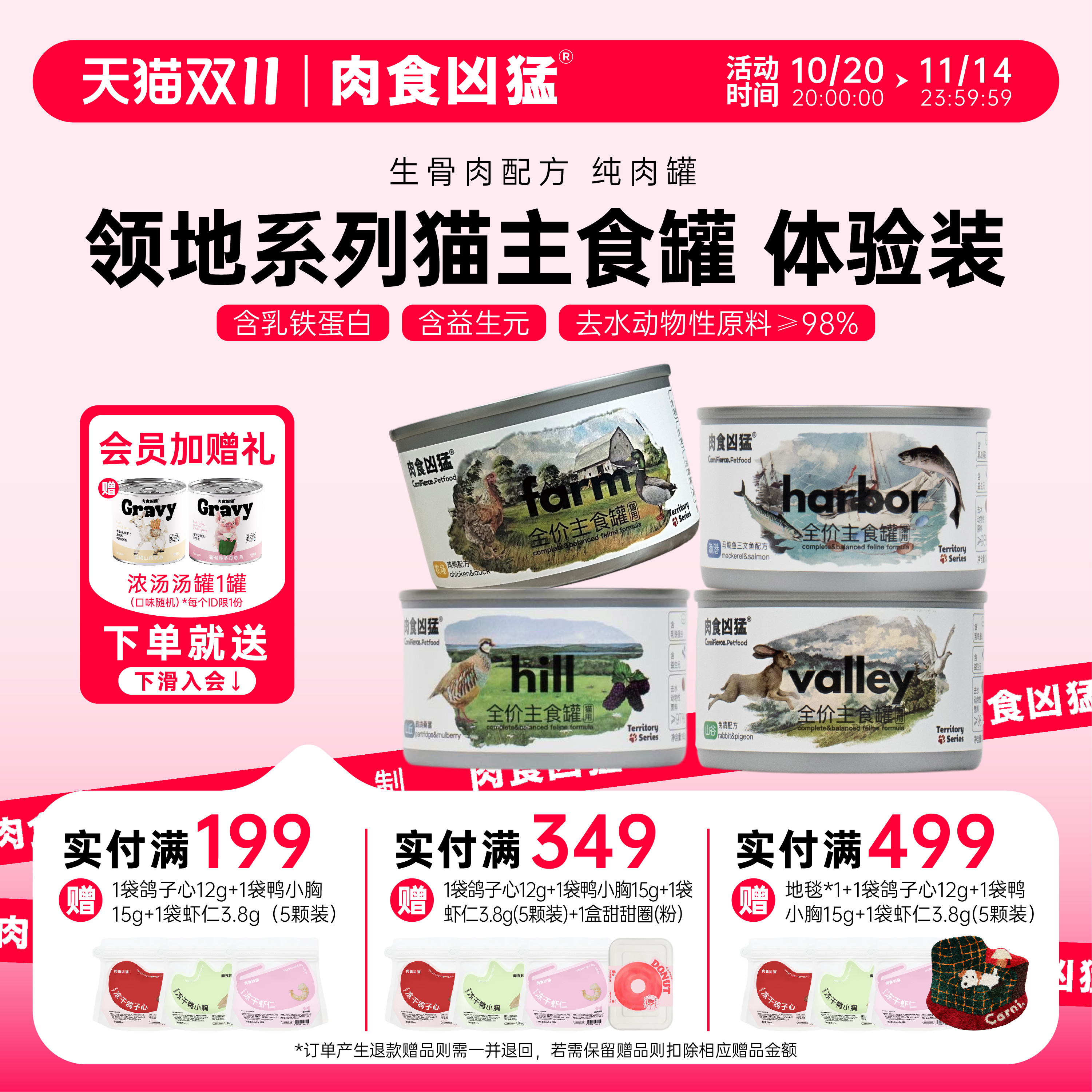 【肉食凶猛】猫主食罐鸡鸭兔鸽三文马鲛鱼鹧鸪桑葚生骨肉猫饭湿粮