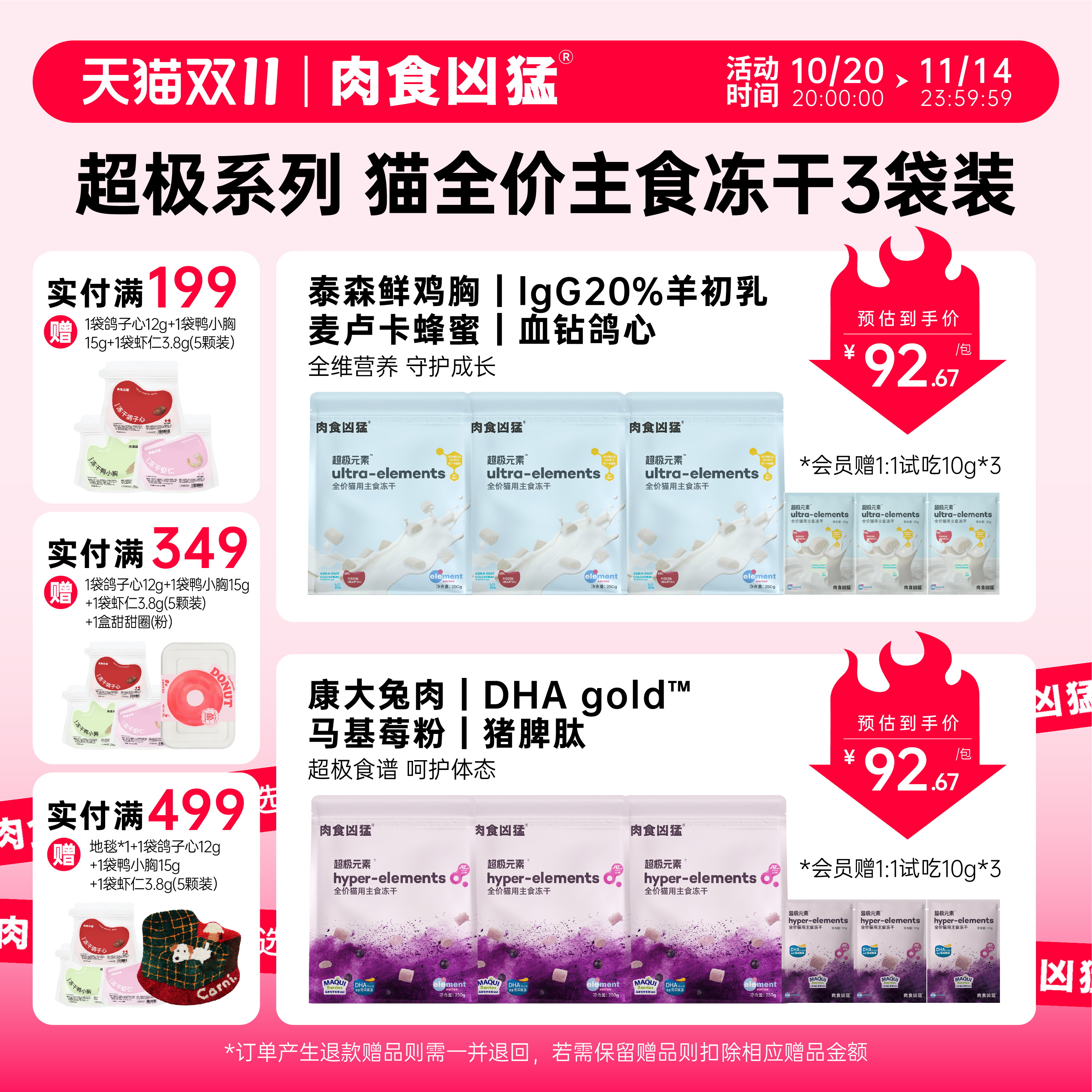 【囤货价更优】肉食凶猛 猫主食冻干超极元素鸡肉兔肉低脂3袋装