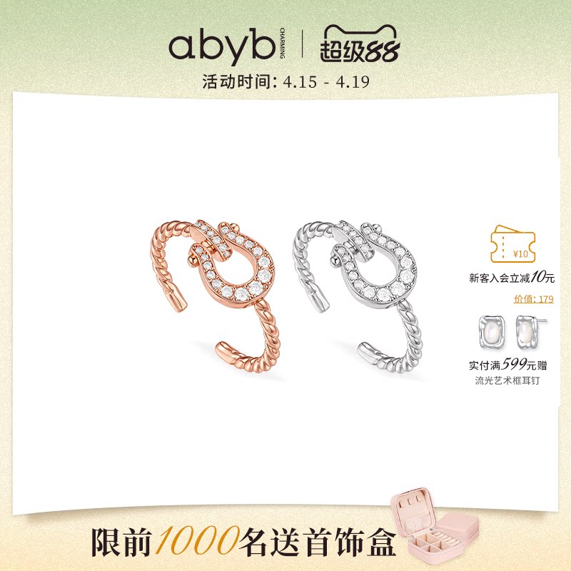 明星同款abyb新款马蹄哒哒戒指玫瑰金开口戒轻奢食指戒对戒礼物