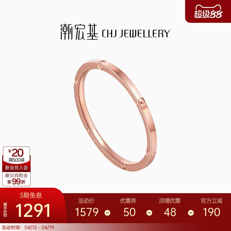 潮宏基18K金戒指玫瑰彩金素圈戒圈手饰个性时尚通勤百搭礼物女