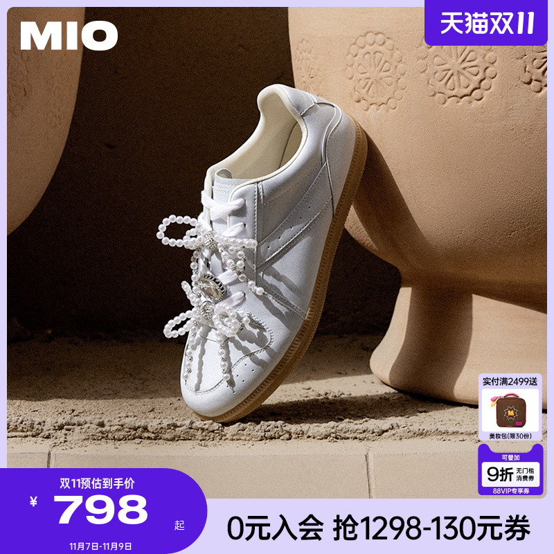 MIO米奥板鞋女miu系珍珠芭蕾休闲鞋2025夏运动拖鞋蝴蝶结德训鞋