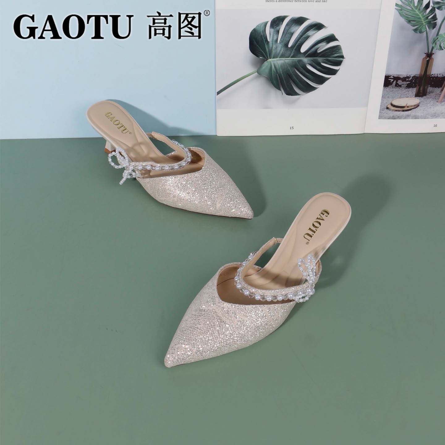 高图包头拖鞋女2025夏季新款尖头珍珠蝴蝶结优雅四季鞋6571-21672