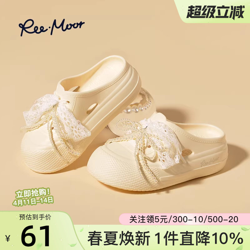 reemoor2026夏新款外穿包头拖鞋珍珠蝴蝶结厚底休闲一脚蹬睿慕