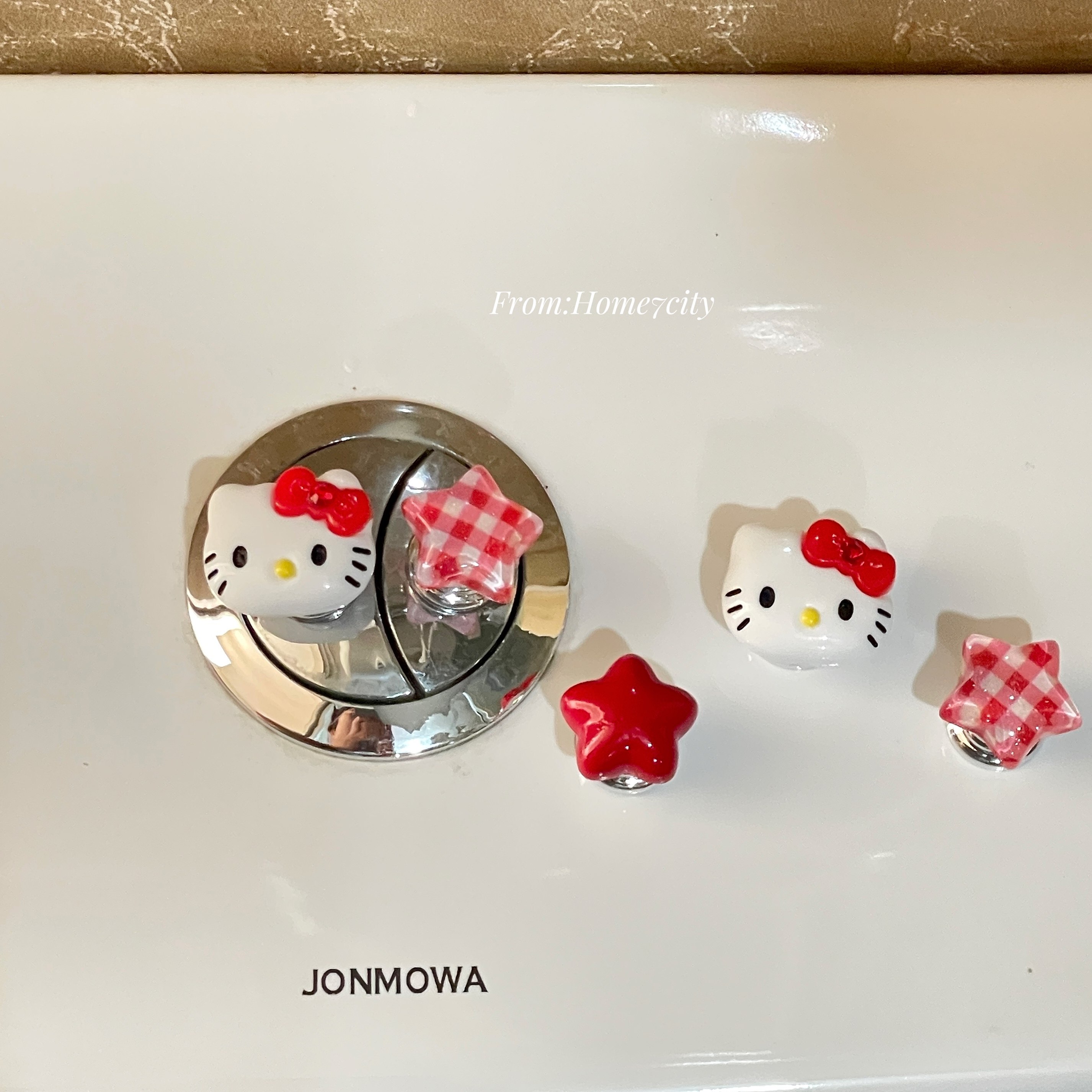 一套4个!可爱猫咪五角星马桶按压器省力贴式美甲专用冲水按键贴饰