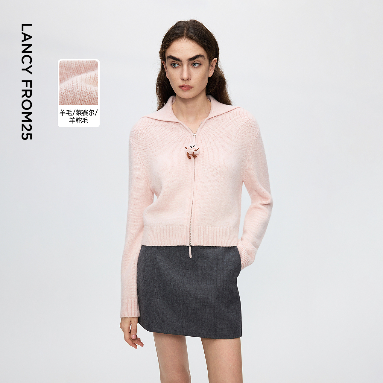 朗姿羊毛大翻领针织开衫气质高级感通勤时尚毛衣女2025年冬季新款