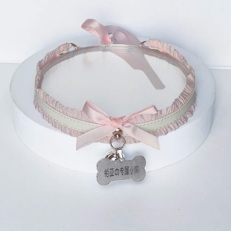 专属定制刻字铃铛项圈蝴蝶结定制项链女猫咪大码粉色情侣狗链饰品