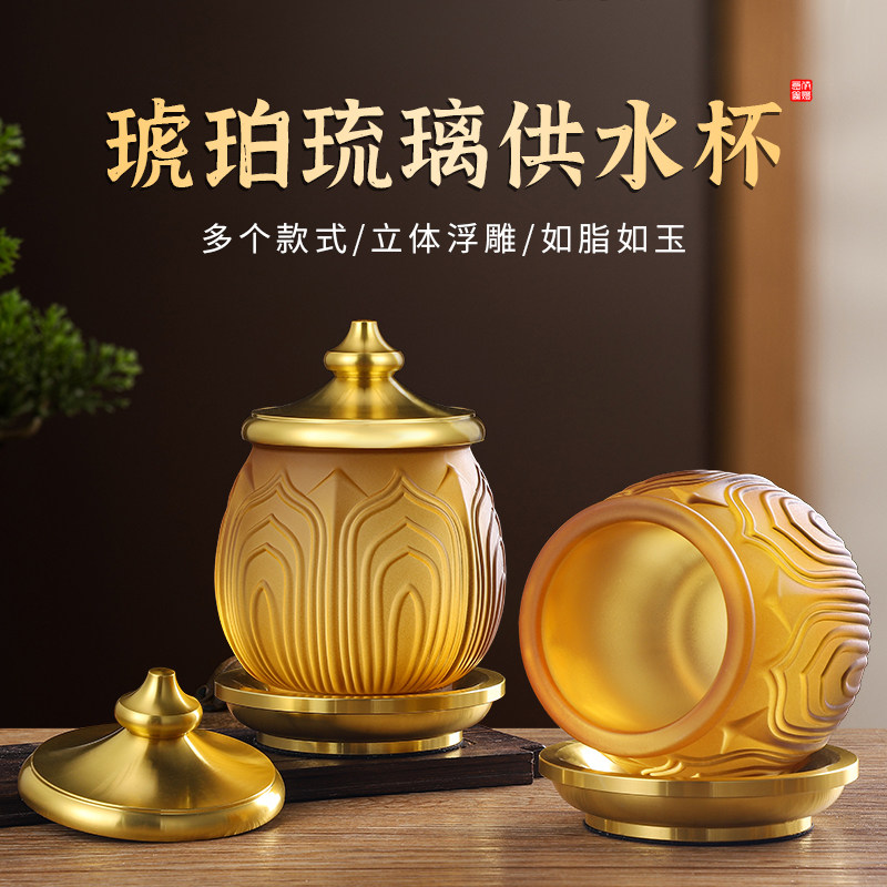 琉璃圣水杯供水杯供佛杯小号大号家用观音净水杯佛前供水佛堂可用