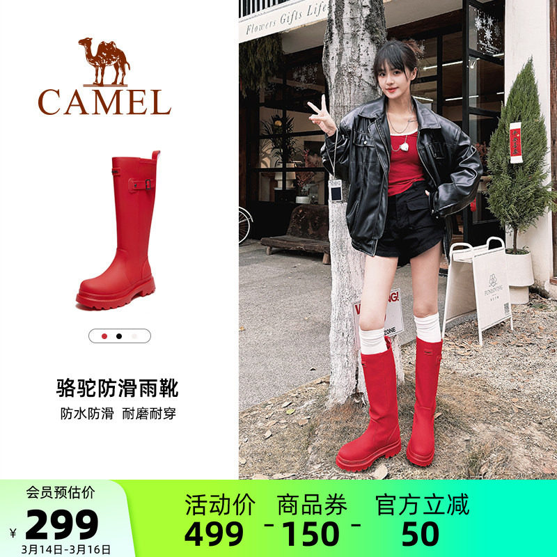 骆驼雨神雨靴新年红色战靴高颜值户外鞋女涉水鞋子防水防滑长筒靴