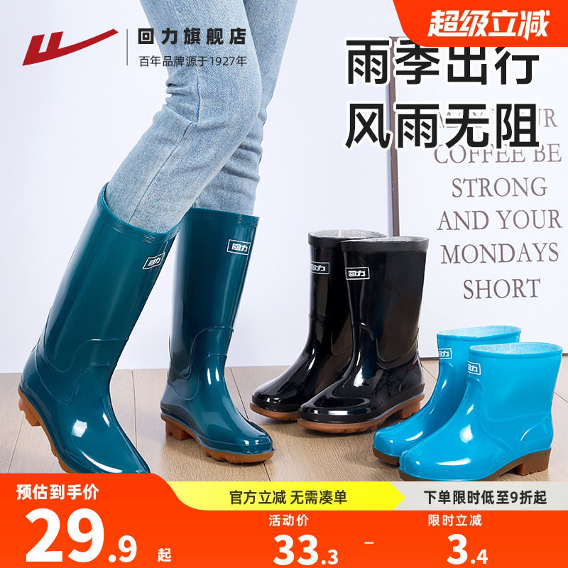 回力雨鞋女士中筒高筒雨靴成人水鞋时尚水靴保暖加绒防水胶鞋套鞋