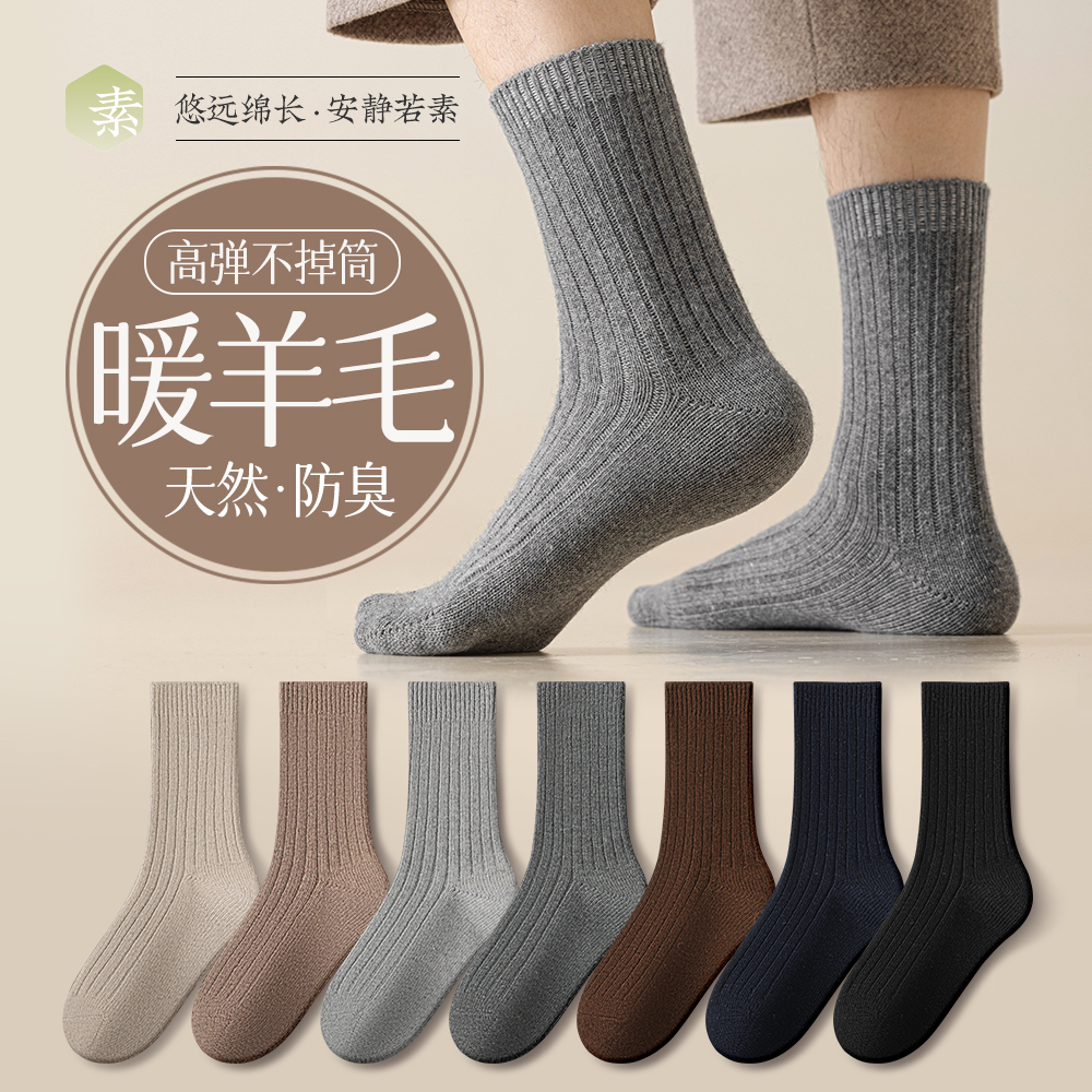 袜子男冬季加厚保暖羊毛袜2025新款中筒袜防臭商务羊绒长筒袜长袜