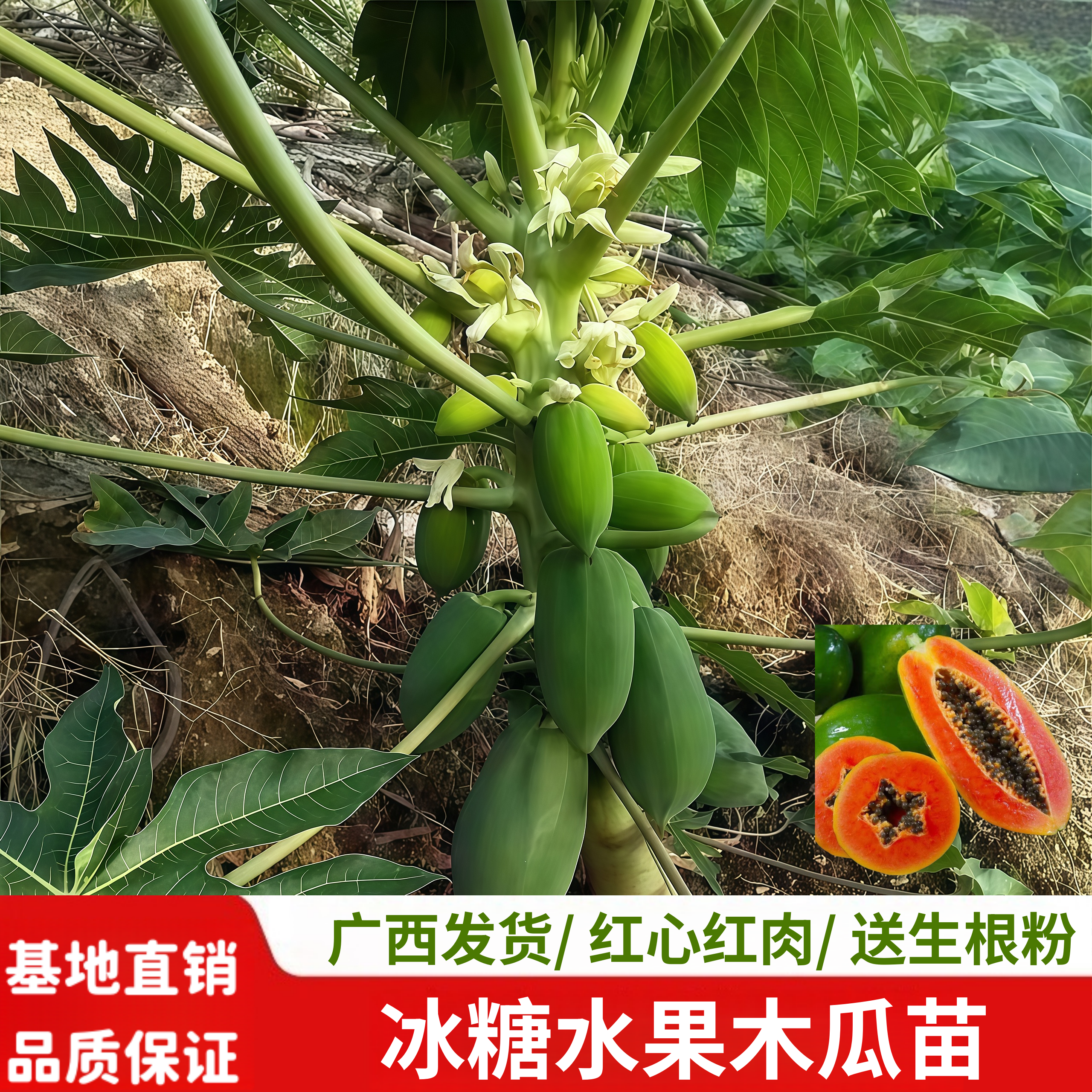 冰糖红心木瓜苗四季当年结果木瓜苗矮化大青红肉水果木瓜苗带土发