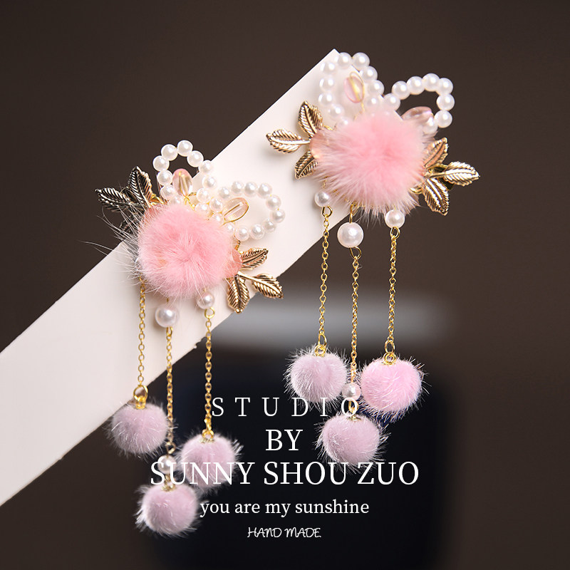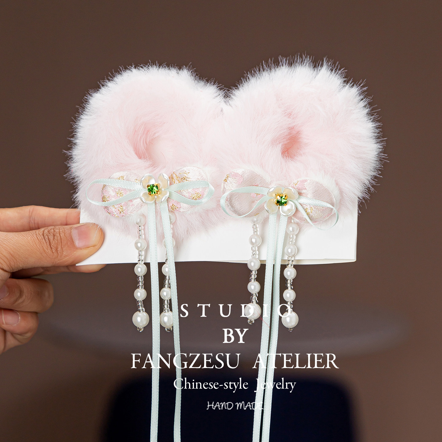 古风汉服可爱猫耳朵发夹日常搭配长流苏头饰毛绒古装儿童对夹发饰