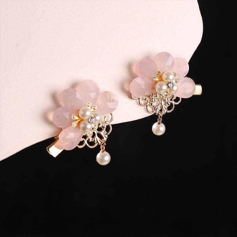 新中式山茶花珍珠发夹新款鸭嘴夹女古风流苏头饰侧边夹刘海夹发饰