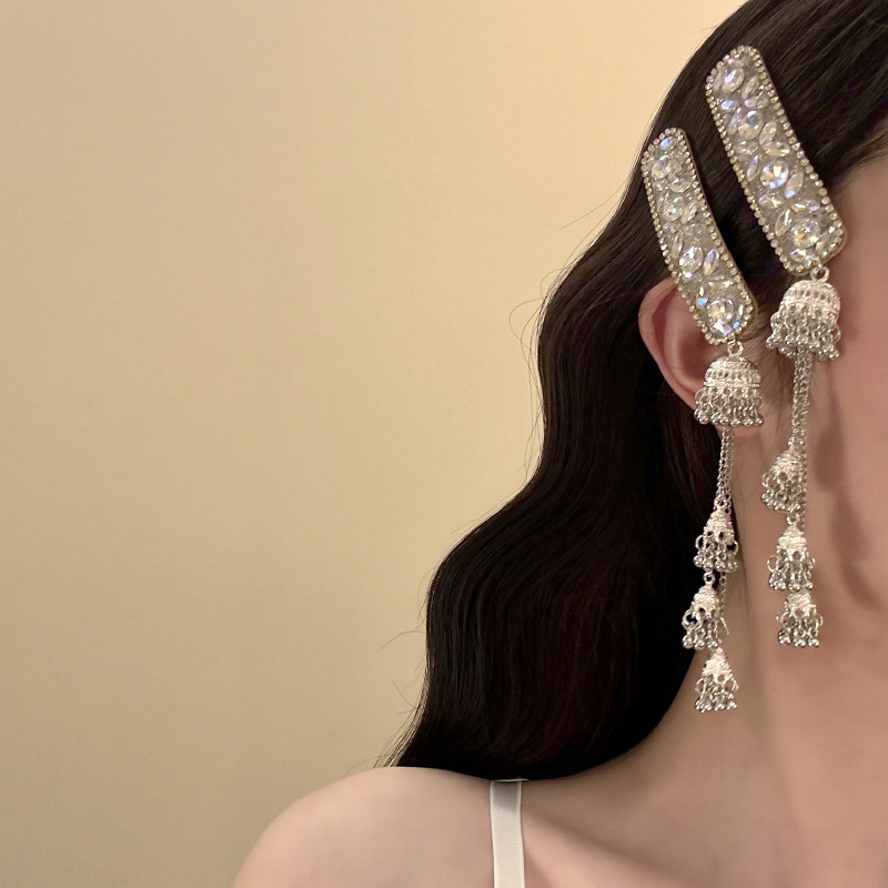 zoozmini新中式民族风发夹银色风铃流苏头饰礼服配饰精致满钻发卡