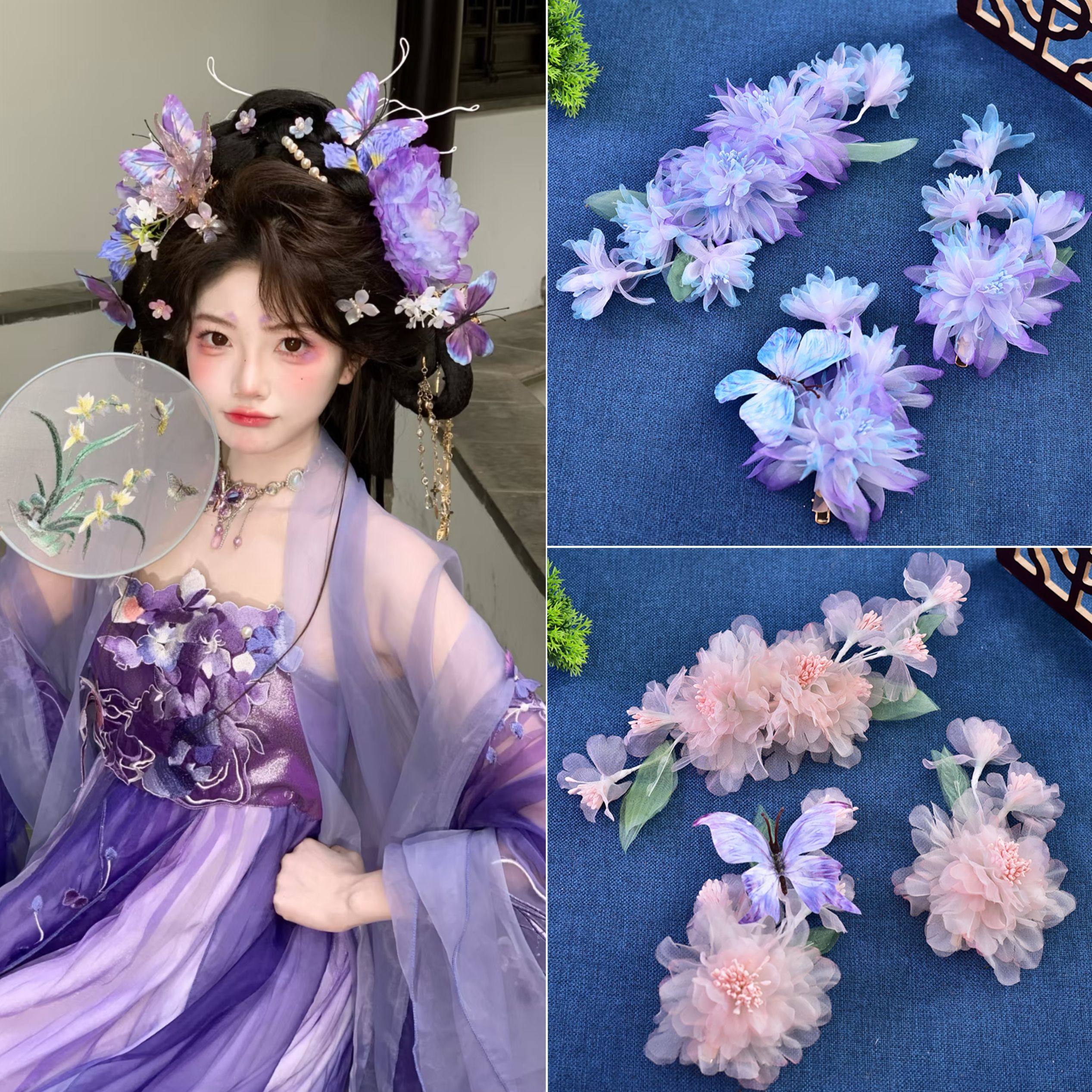 超仙渐变紫色鸭嘴夹女绢花流苏头饰古风仙气烫花汉服发饰侧边头花