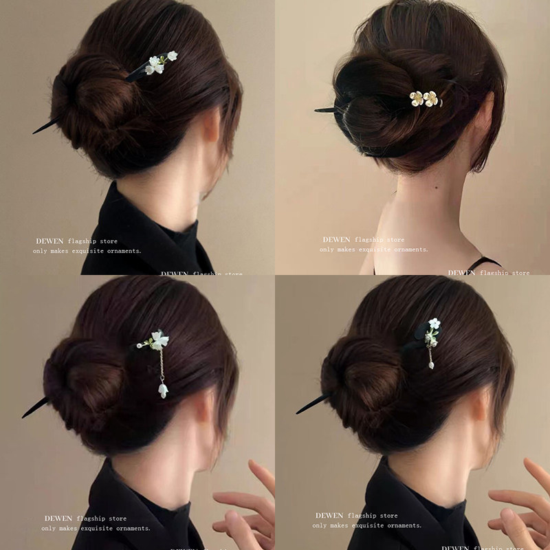 新中式发簪清新铃兰花木簪女盘发簪子复古流苏头饰国风日常发钗子