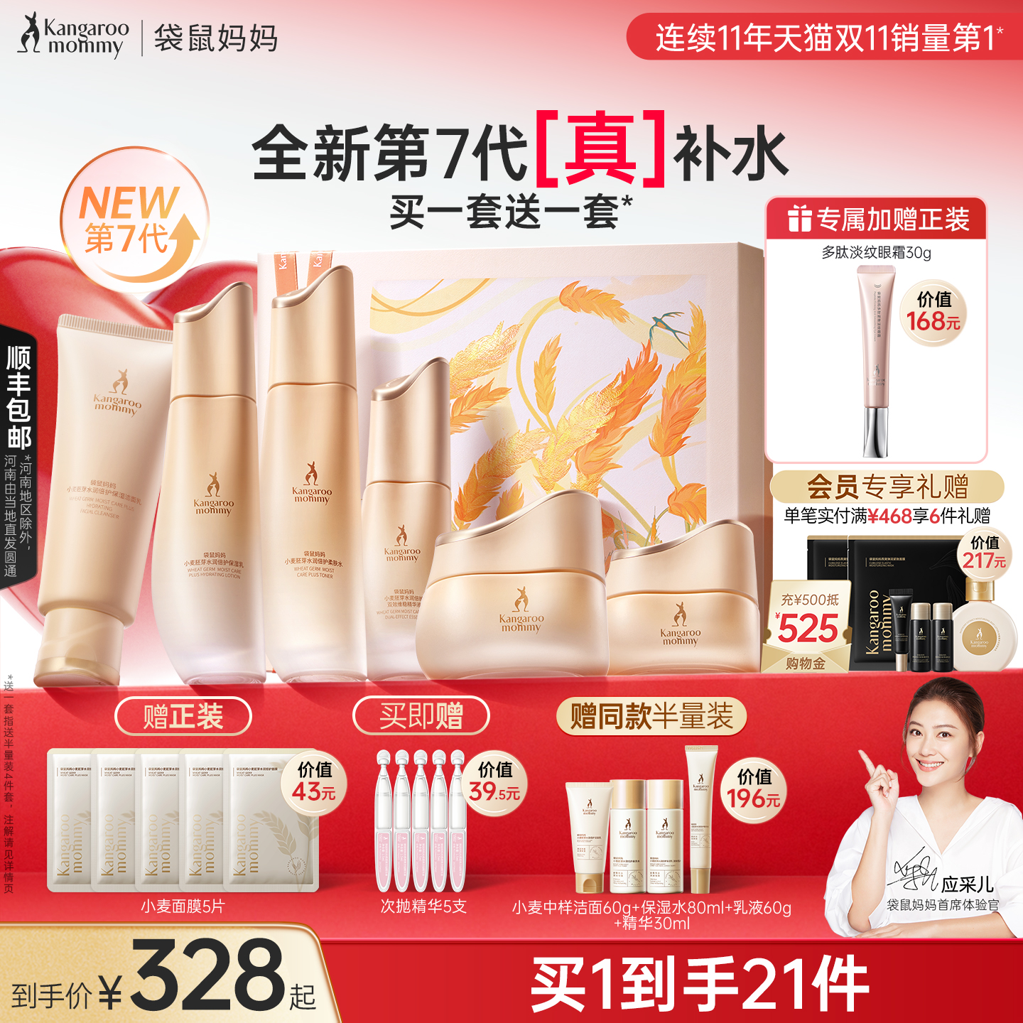 【全新升级】袋鼠妈妈小麦准孕妇水乳套装护肤品可专用精华化妆品