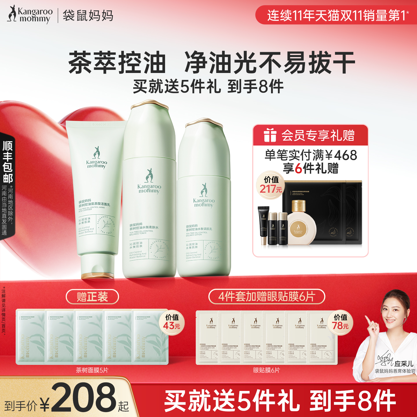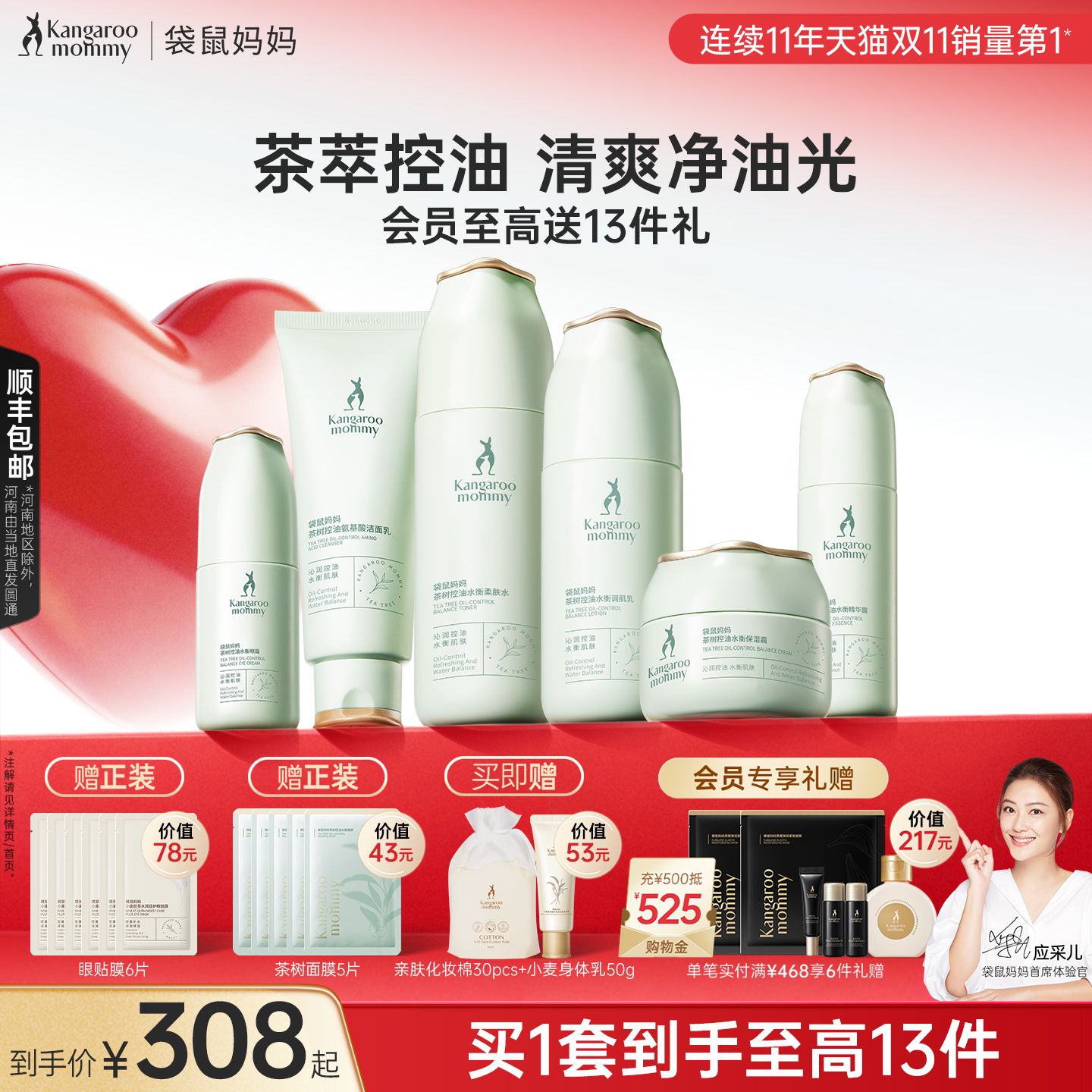 袋鼠妈妈孕妇控油祛痘套装茶树清爽补水保湿孕产妇期油皮肌护肤品