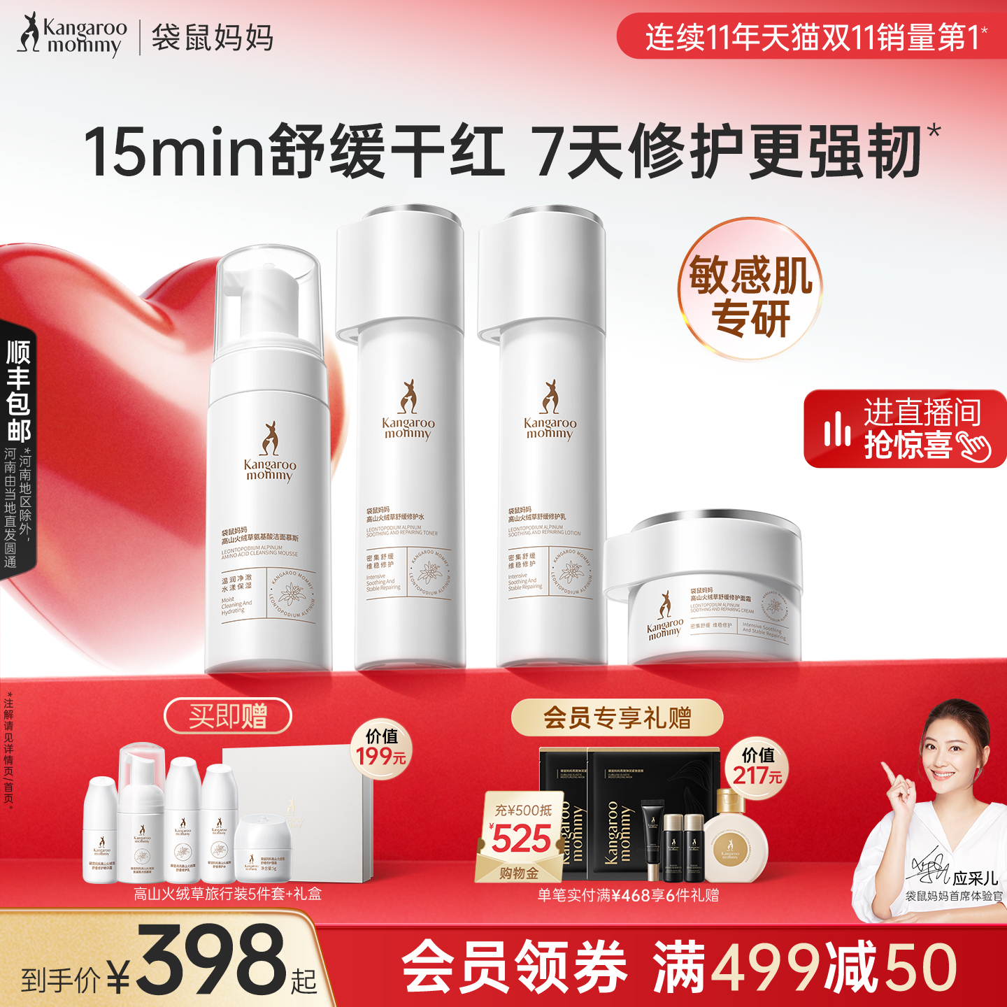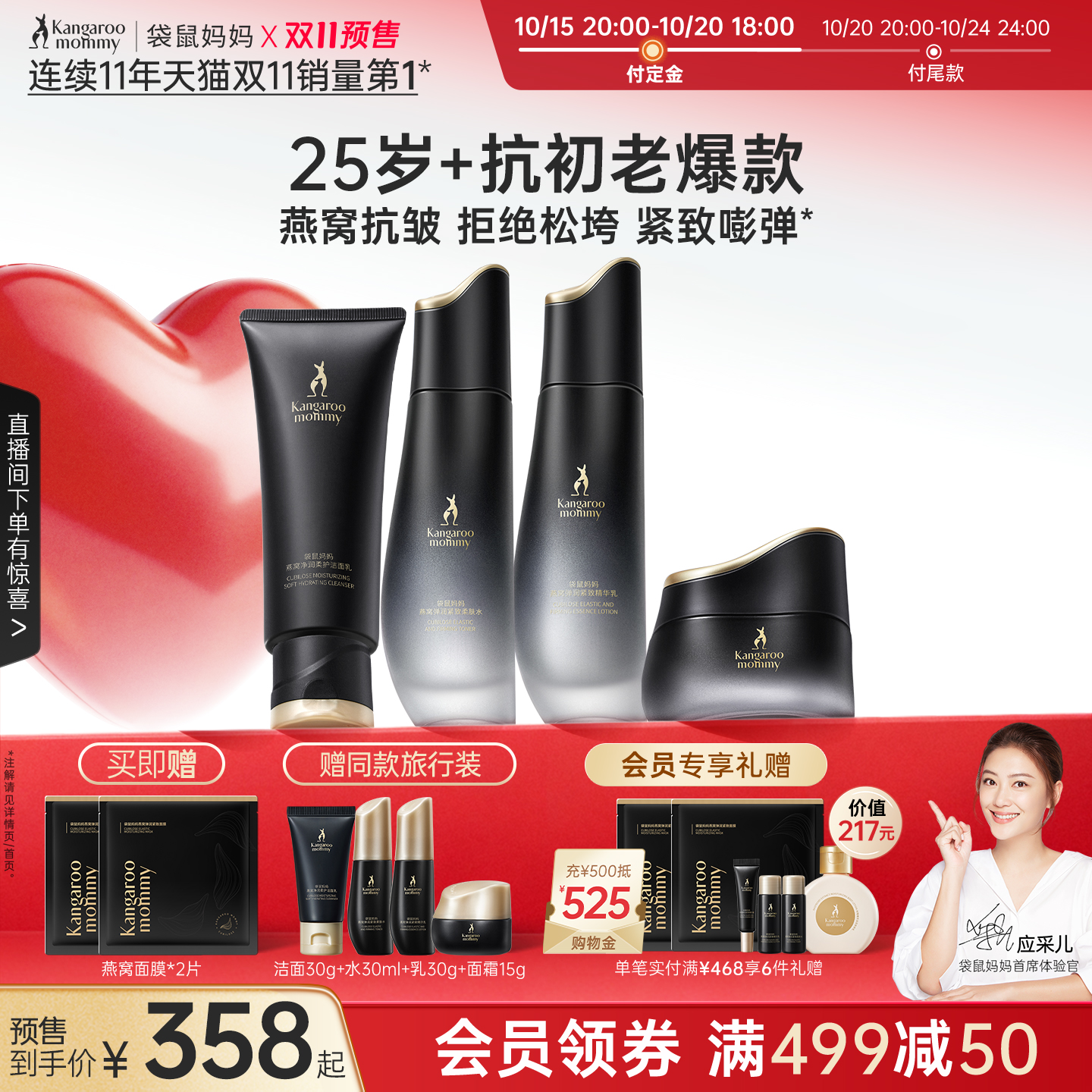 【直播专属】袋鼠妈妈燕窝套装准孕妇护肤品抗皱紧致专用买一送一