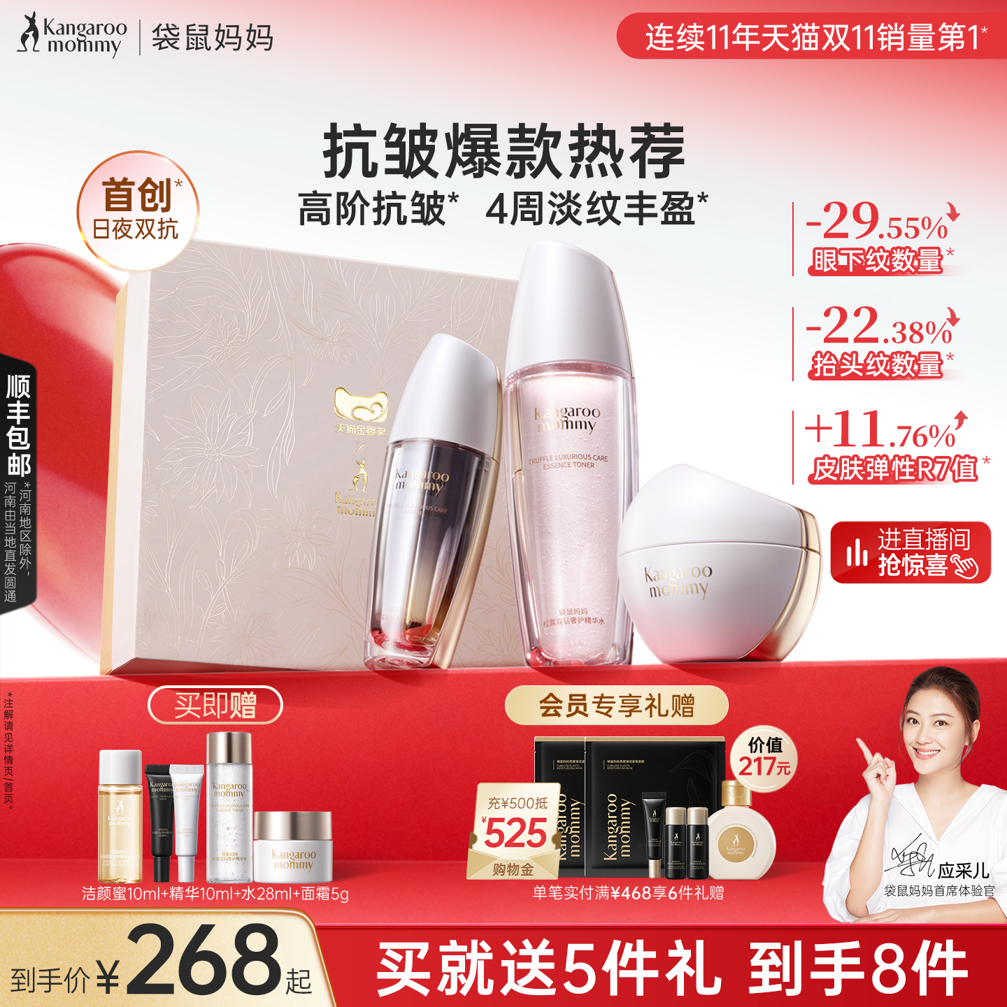 袋鼠妈妈双抗精华液黑白松露水准孕妇护肤品抗皱紧致淡纹面霜套装