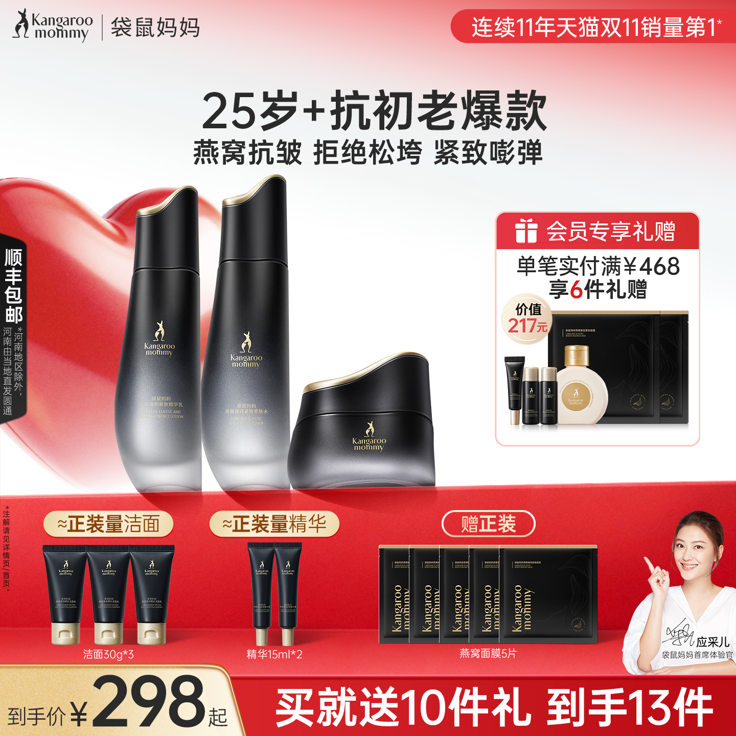 【双11立即付定】袋鼠妈妈燕窝护肤品准孕妇紧致抗皱可用水乳套装