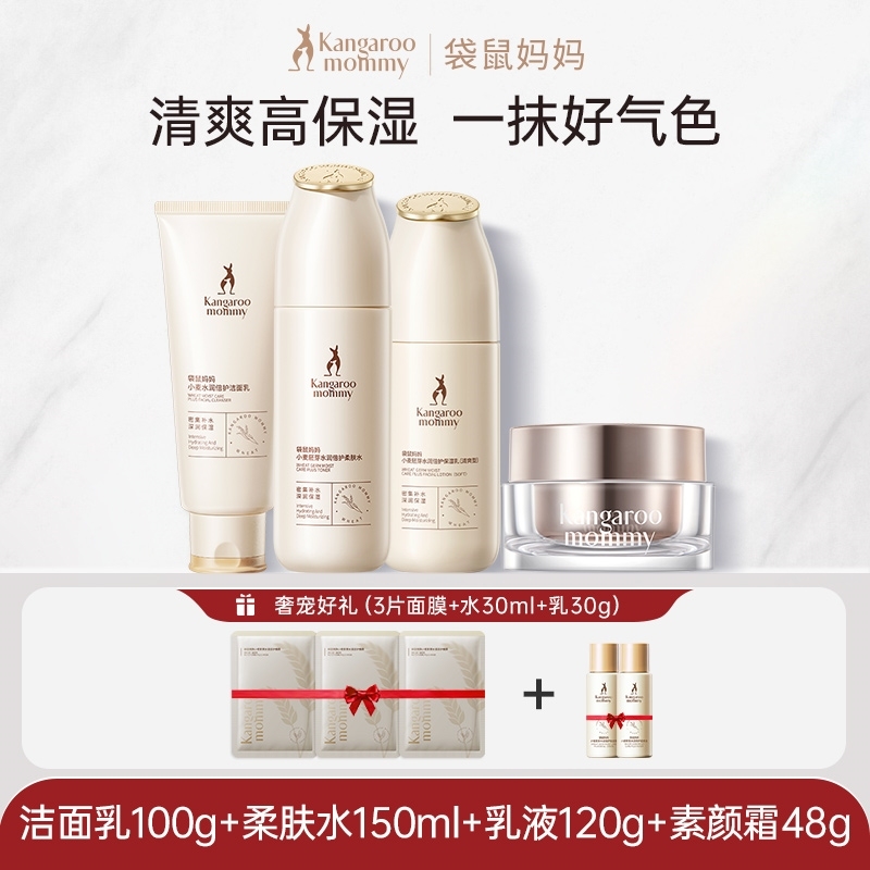 袋鼠妈妈孕妇护肤品套装水乳补水保湿温和小麦洗面奶怀孕适用哺乳
