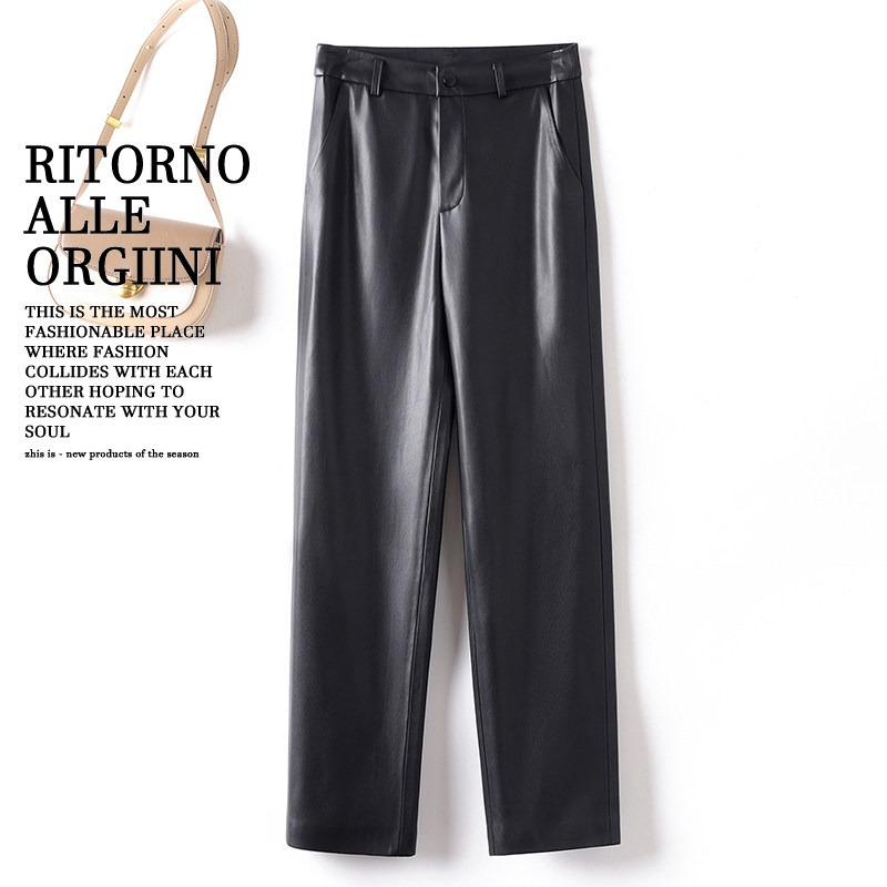 Mooelpom2025秋冬新款中缝直筒九分皮裤女显瘦百搭中腰蛋白皮裤子