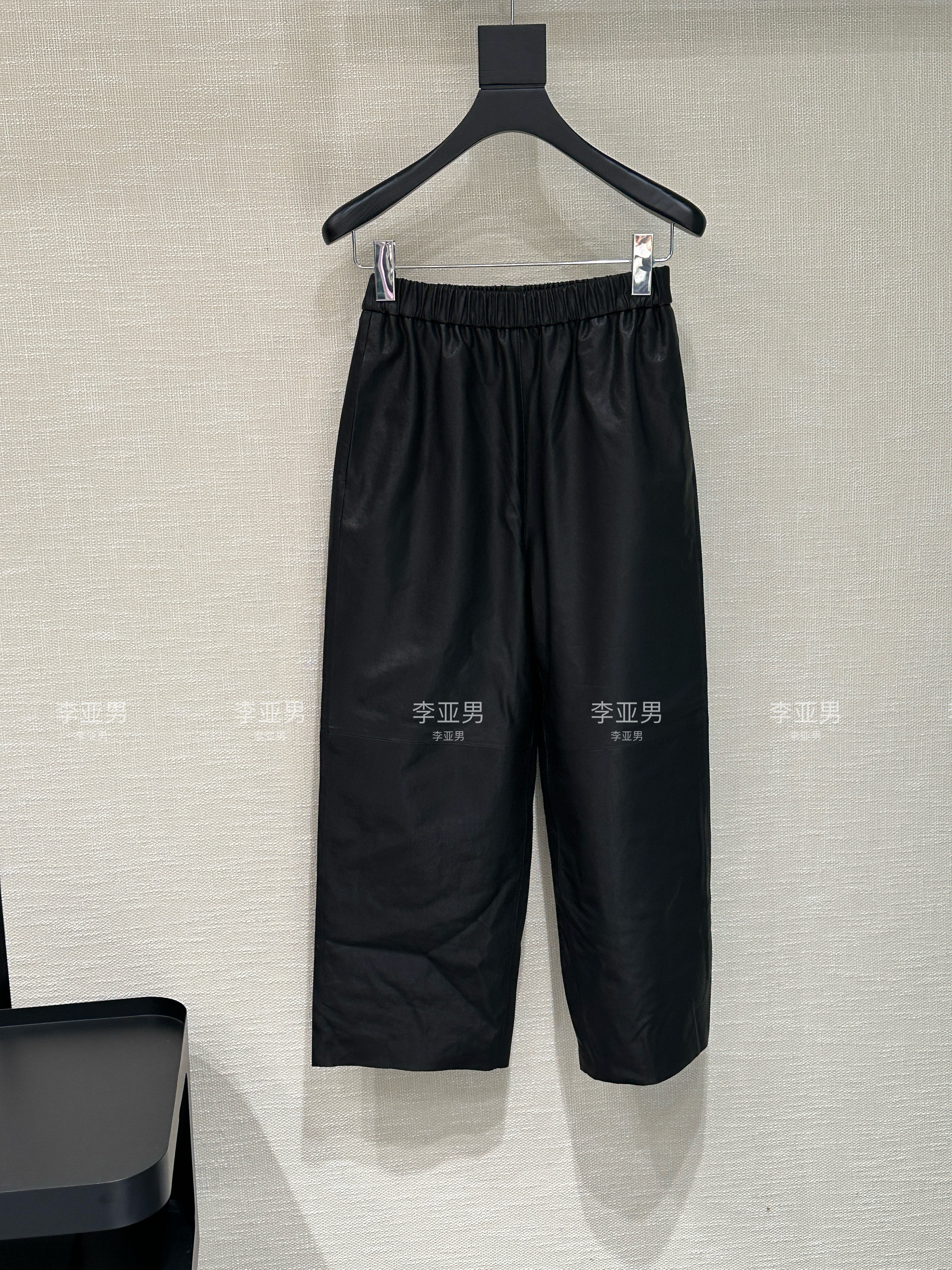 自留李亚男2025年秋冬新品 〈进口羊皮〉时髦百搭松紧腰九分 皮裤